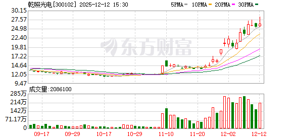 证券日报网讯 12月12日晚间,乾照光电发布公告称,厦门乾照光电科技有限公司已于近日完成工商变更登记,取得厦门市市场监督管理局换发的新《营业执照》,注册资本1亿元,住所位于厦门火炬高新区翔安产业区翔天路269号5楼,经营范围涵盖LED及显示、照明产品批发零售、光电光伏技术咨询、合同能源管理等。